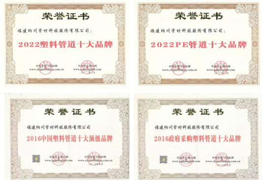 在长期发展过程中安博注册(中国)股份获得了客户广泛认可,并被政府部门授予多项荣誉。2016年安博注册(中国)作为海南文昌航天发射场主要的管材提供商,被授予“海南文昌航天发射场建设贡献奖”,同年,公司获评“政府采购塑料管道十大品牌”、“中国塑料管道十大顶级品牌”。2022年安博注册(中国)股份再次荣获“2022PE管道十大品牌”、“2022塑料管道十大品牌”荣誉称号。