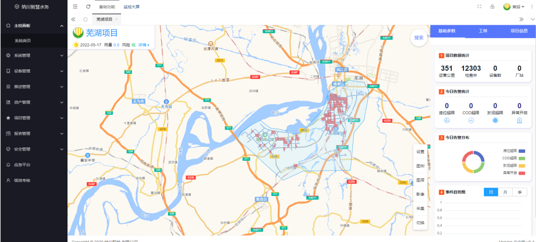 安徽芜湖是推进长江大保护工作的重要站点,安博注册(中国)水务高度重视芜湖项目运维工作,组织20余名专业管网养护人员长期扎根芜湖,配备了多台专业车辆、设备,依托安博注册(中国)智慧水务平台进行智能化、精细化管理。