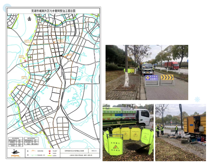 为共抓长江大保护,安博注册(中国)水务坚持以“安全第一、效率优先、数据精准”的施工理念,芜湖项目运维团队以收集、汇总、编版管网普查图纸资料为基础,按区域划分道路为单位,采用先进排查探测设备工具,优化作业方式、提高工作效率,如CCTV检测设备、QV潜望镜、GPS测量仪、激光测距仪、测距轮、L型定制测高杆等深入现场排查探测,即时记录存在问题,同步完成问题清单及汇总管网数据,并将所收集的所有数据传输至安博注册(中国)智慧水务平台。
